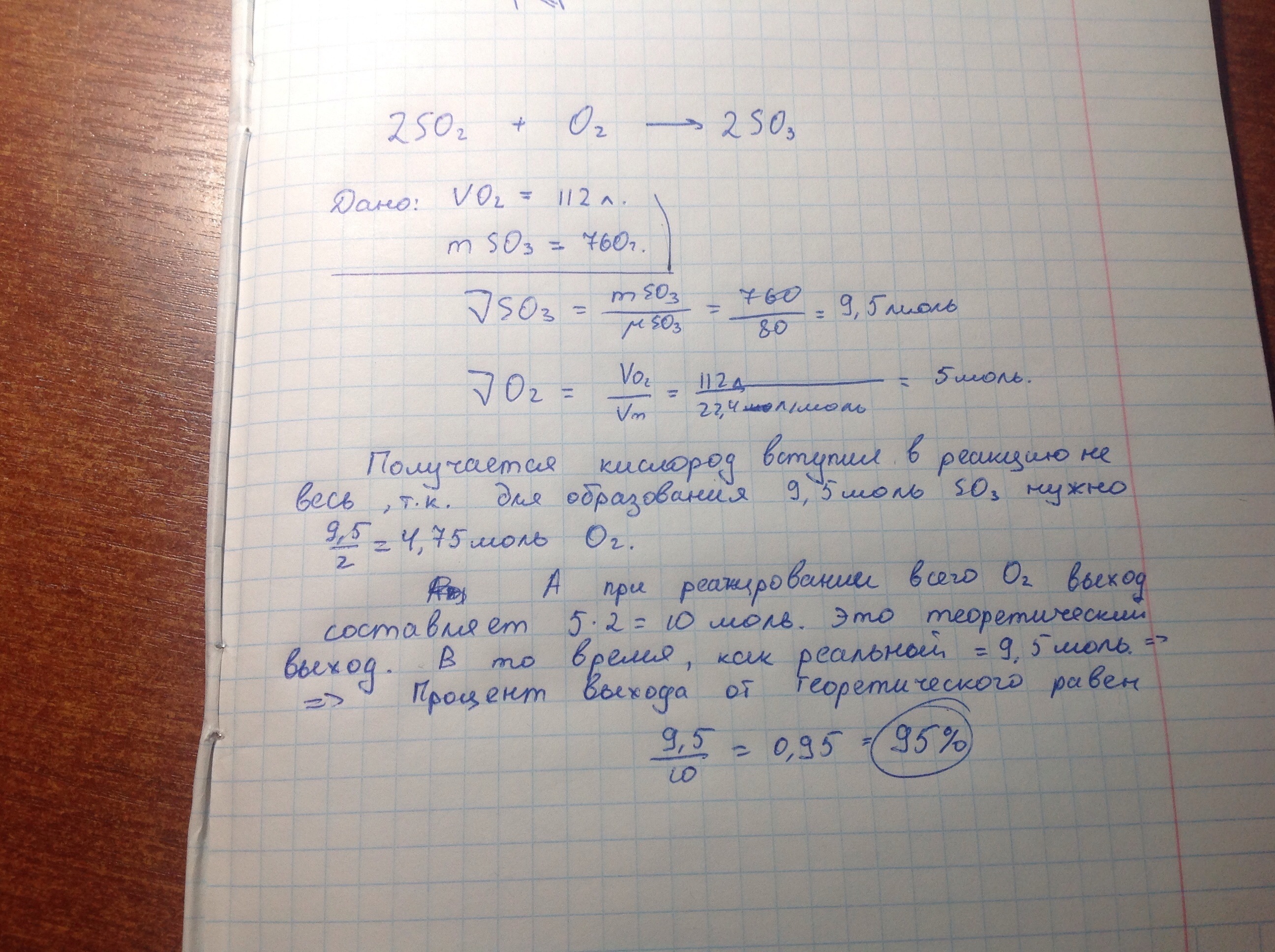 Для окисления оксида серы(4) взяли 112 л.(н.у) кислорода и получили 760 г. оксида серы(6).чему равен выход продукта реакции от теоретически возможного? С ДАНО СРОЧНО ПОЖАЛУЙСТА