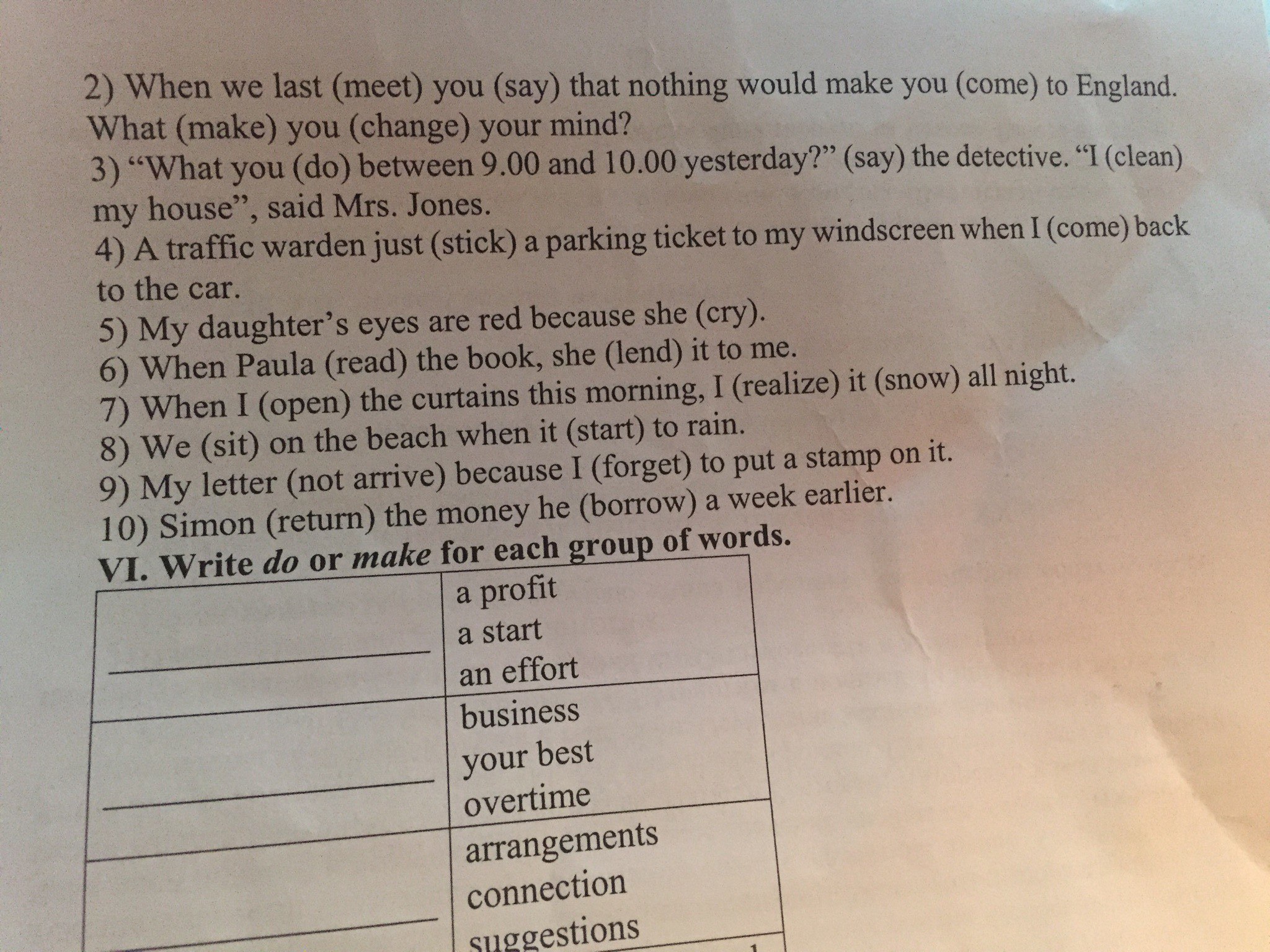 3. "What were you doing between 9.00 and 10.00 yesterday? " - said the detective." I was cleaning my house", - said Mrs Jones.