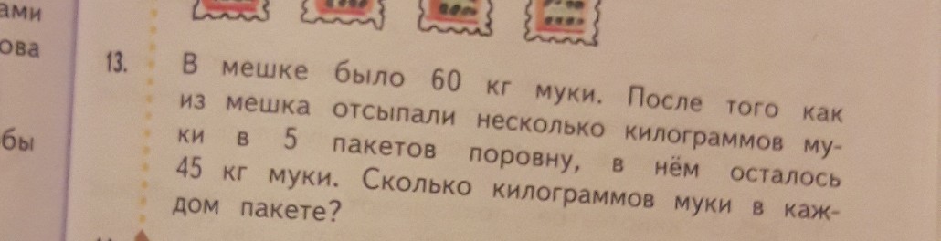 1) 60-45=15(кг)-высыпали
