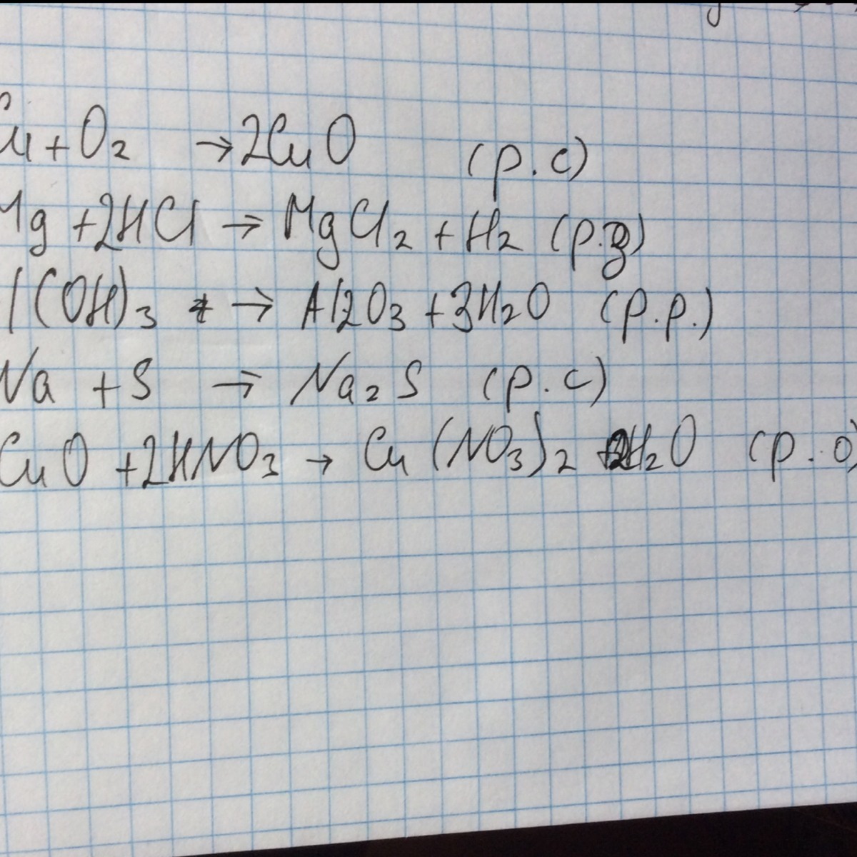 Расставьте коэффициенты в уравнениях, укажите тип каждой реакции:
