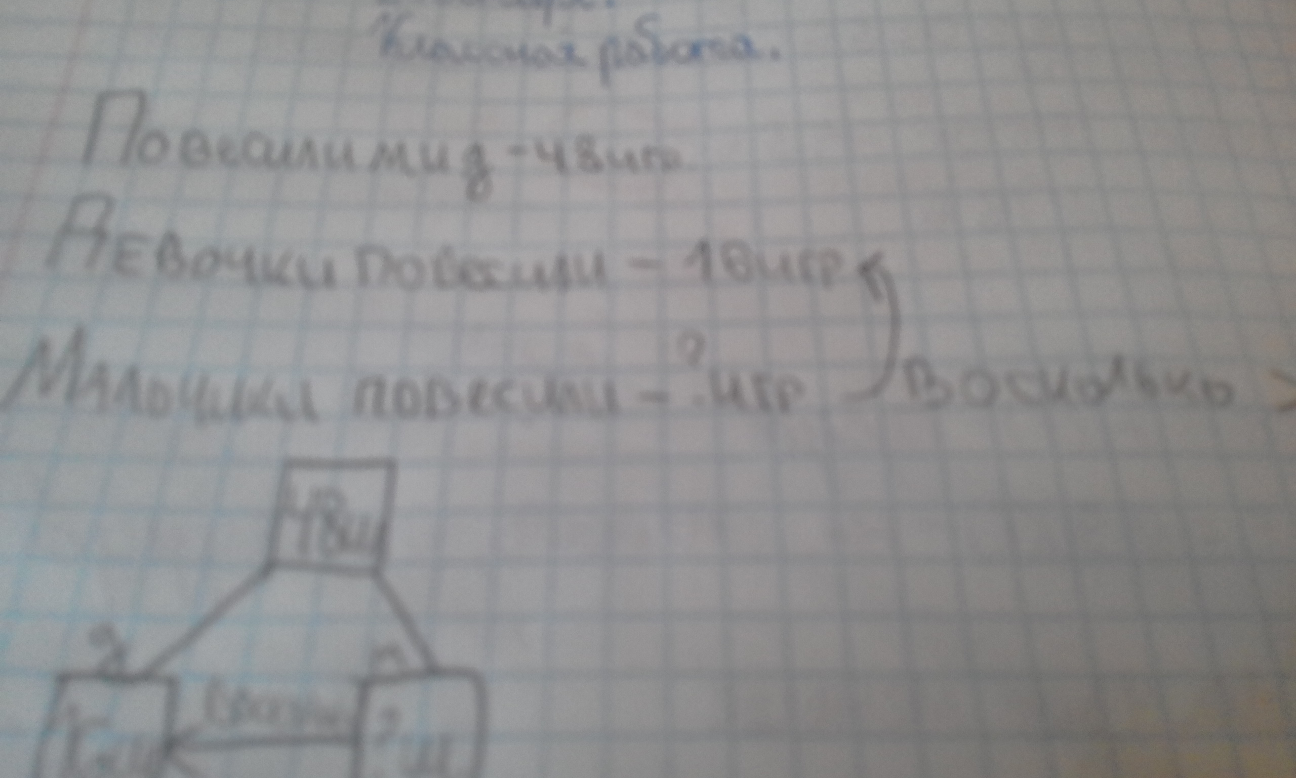Ответ: мальчики повесили в 2 раза больше игрушек