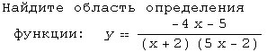 Т.к. делить на 0 нельзя, то область определения будет: x не равен -2 и 2/5