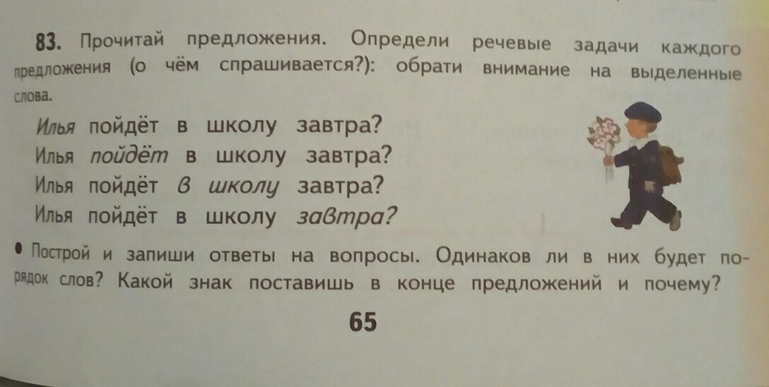 прочитай предложение Определи речевые задачи каждого предложения о чём Спрашивается Обрати внимание на выделенные слова