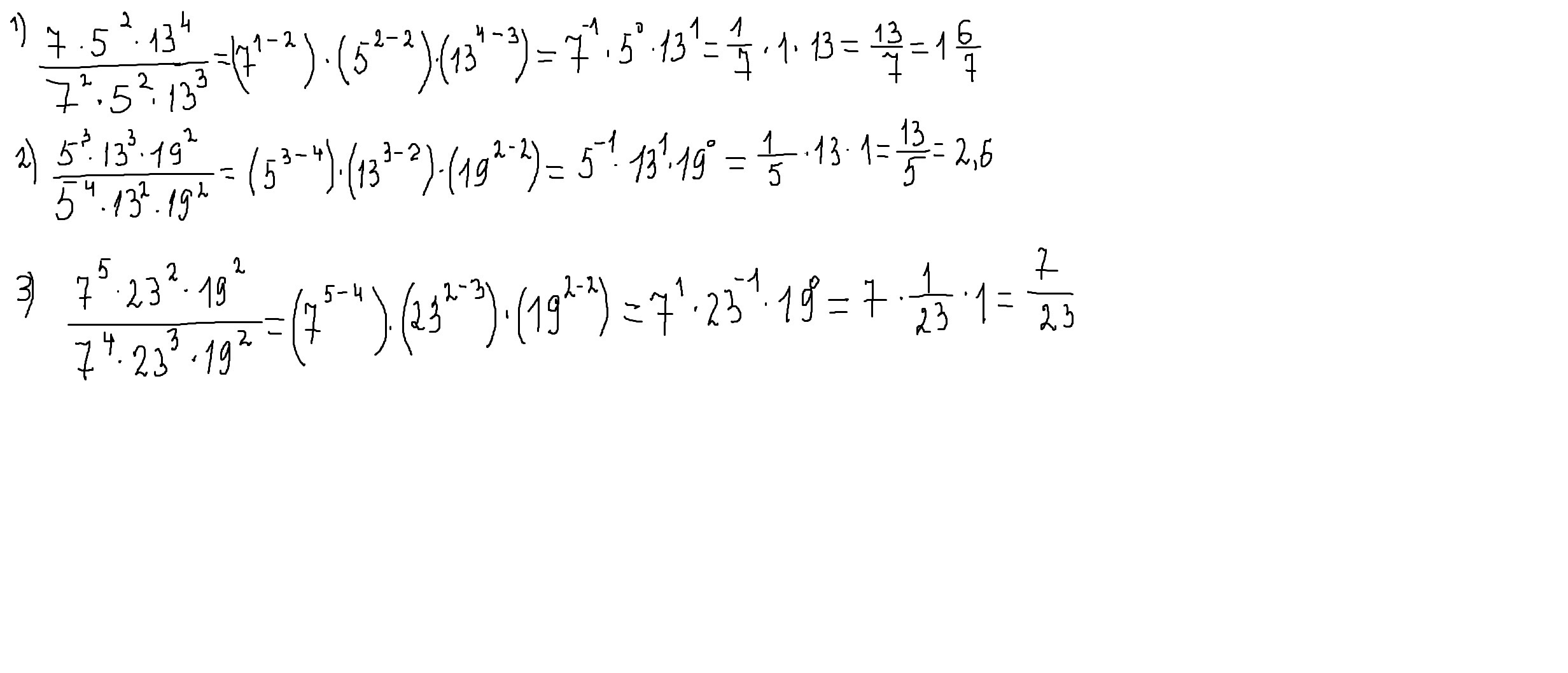 при делении степеней с одинаковым основанием показатели вычитаются