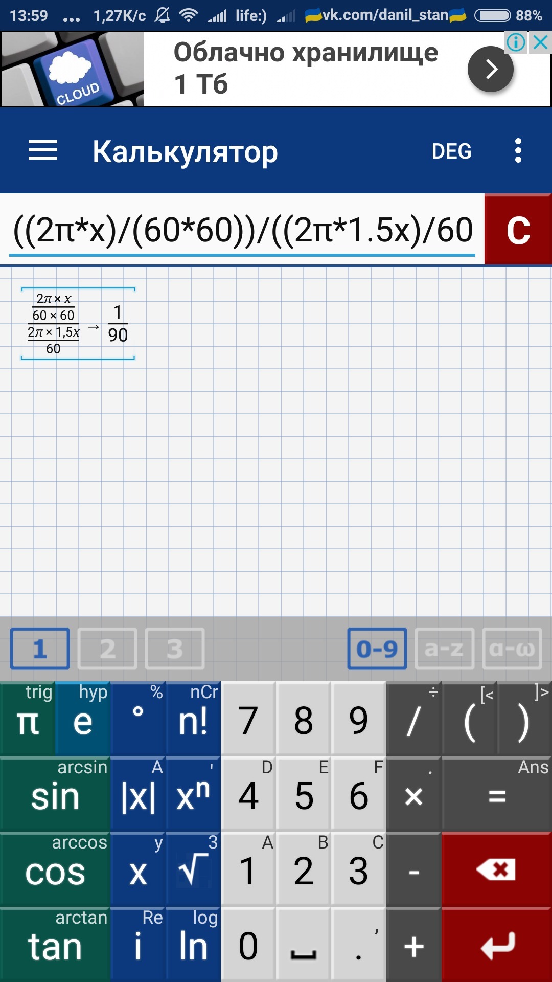 длина секундной = 1,5r (в калькуляторе 1.5х)