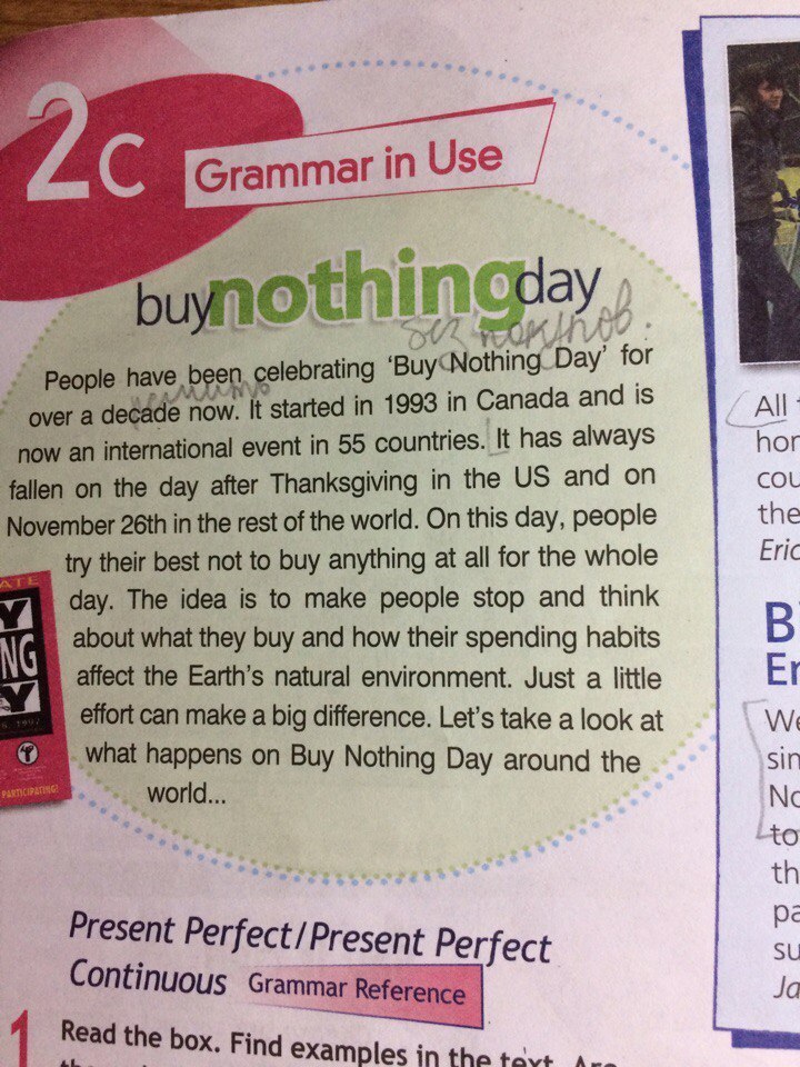 Люди уже более десяти лет празднуют «День без покупок». Он появился в 1993 году в Канаде и в настоящее время празднуется в 55 странах. Он всегда выпадает на следующий день после Дня благодарения в США и 26 ноября в остальном мире. В этот день люди стараются изо всех сил ничего не покупать. Идея состоит в том, чтобы заставить людей остановиться и подумать о том, что они покупают, и о том, как их привычки тратить влияют на экологию Земли. Ведь, небольшое усилие может иметь большое значение. Давайте взглянем на то, что происходит в «День без покупок» по всему миру...