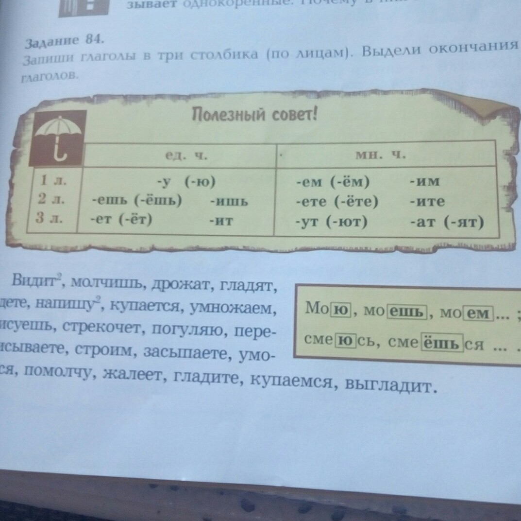 1 лицо: напишу, умножаем, погуляю, строим, помолчу, купаемся