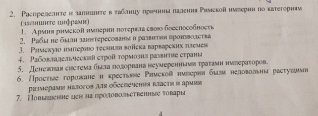 Ребята помогите распределить и записать в таблицу причины падения Римской империи по категориям.