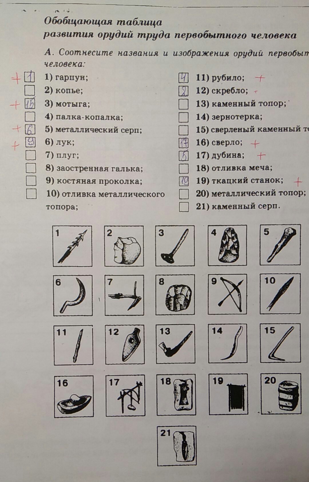 зернотёрка16каменный топорметпллический топор13отливка топора18каменный копьё10