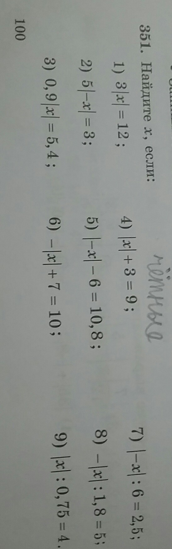 2)5|-х|=3 4)|х|+3=9 6)-|х|+7=10 8)-|х|:1,8=5