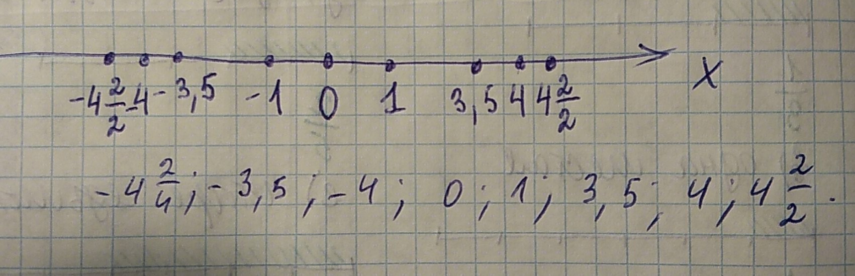 изобразите точками на координатной прямой все корни слкдующих уравнений: 3) |y|=3,5; 4) |y|=4 2/2; 5) |x|=1; 6) |x|=4
