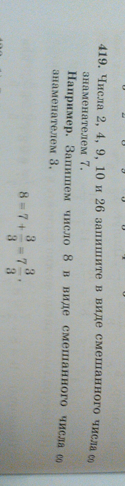 Любое число можно представить как сумму двух слагаемых. Нам нужно, чтобы одним из слагаемых была единица, потому что ее мы можем задать какой угодно дробью. Например 2/2 = 1 ; 500/500 = 1; 3000/3000 = 1 (дробная черта это тоже самое, что и знак деления) . Поэтому, в нашем случае