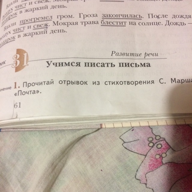 Кто стучится в дверь ко мне С толстой сумкой на ремне, С цифрой 5 на медной бляшке, В синей форменной фуражке? Это он, Это он, Ленинградский почтальон. У него Сегодня много Писем В сумке на боку Из Ташкента, Таганрога, Из Тамбова И Баку. В семь часов он начал дело, В десять сумка похудела, А к двенадцати часам Все разнес по адресам.
