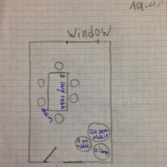 Можно по -разному . Странная какая-то гостиная , только пять предметов мебели , может там ещё что-то есть ?