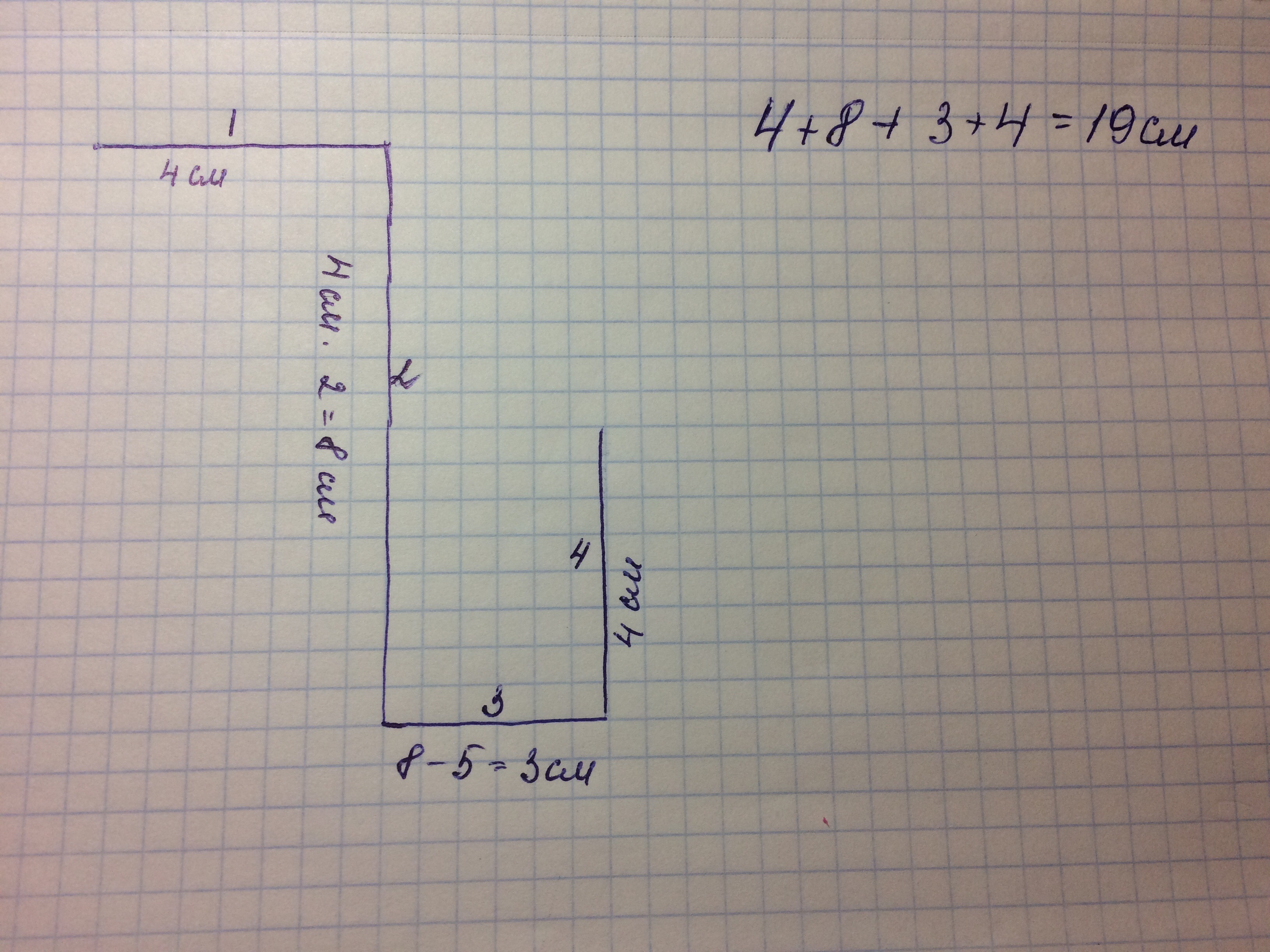 Начертите ломаную линию,состоящую из четырех звеньев;длина одного звена 4см,длина другого в 2 раза больше,третье на 5см короче второго, а длина четвертого звена равна длине первого .Найди длину этой ломаной.