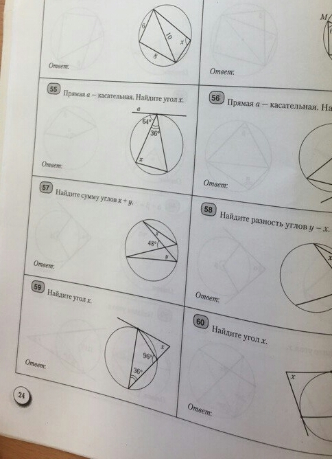 Угол между касательной и секущей равен полуразности высекаемых ими дуг, отсюда: