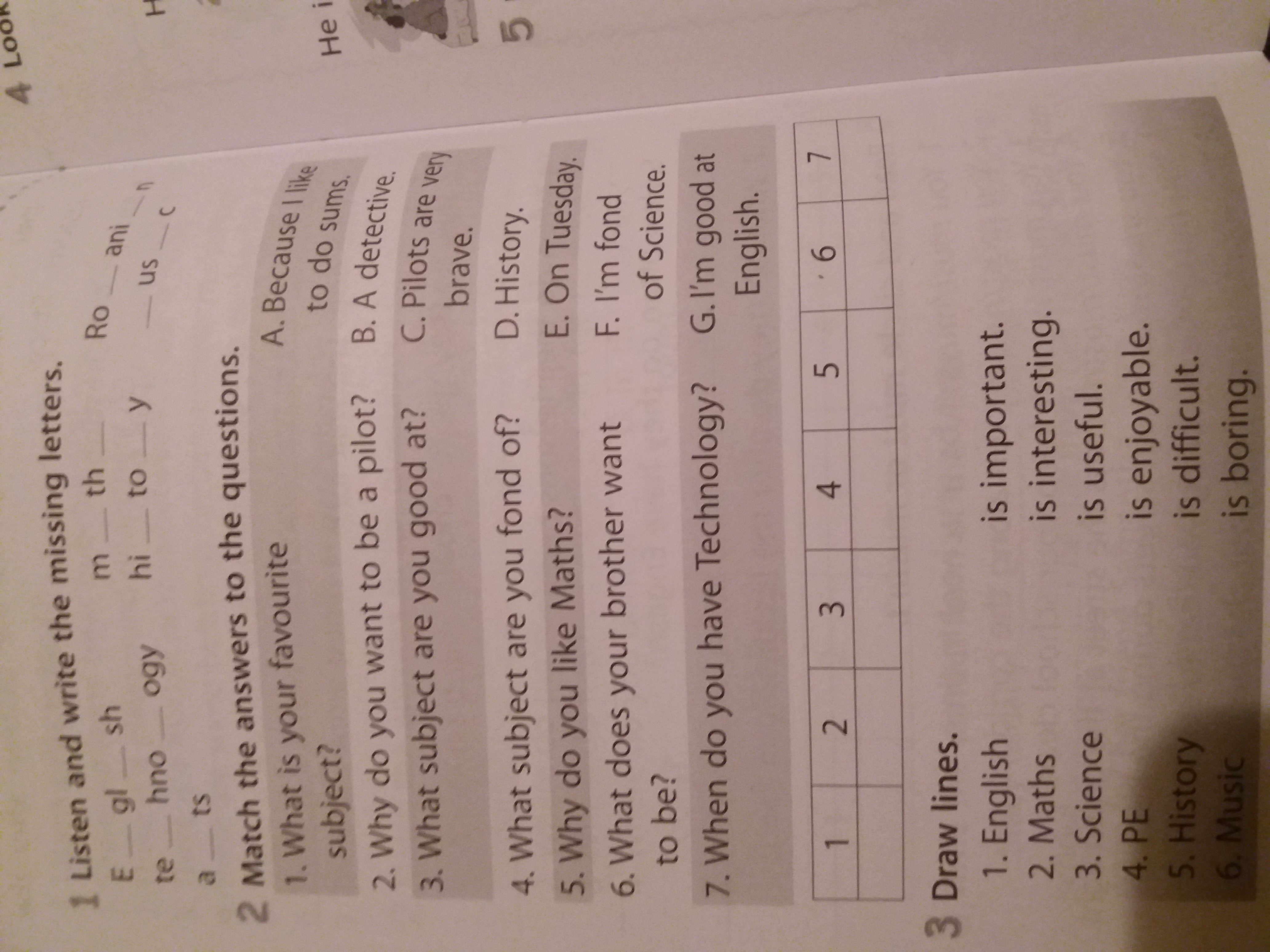 3. English is important, Maths is difficult, Science is interesting, PE is useful, History is boring, Music is enjoyable.