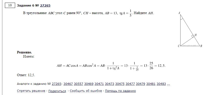 вообще соотношение это довольно легко доказать используя сходство треугольников АСН и СНВ,а что насчет 25/(1+25)*13,то ,если АВ/НВ=1=25/1,то обозначим а НВ=х,тогда АВ=25х,значет АВ=25х+х=26х,при этом АН это 25/26 часть всей гипотенузы,то есть 25/26,а сама гипотенуза 13 см,значит АН= 25/26 * 13=25/2