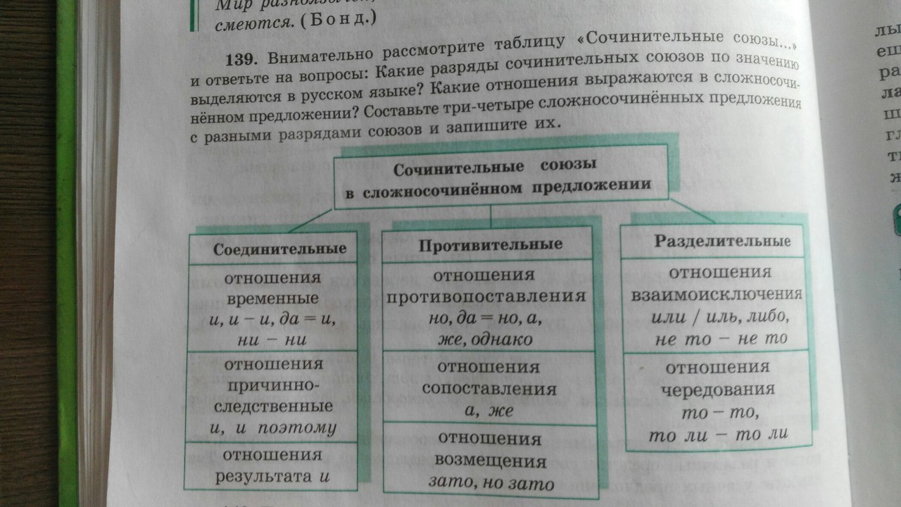 1. Разряды сочинительных союзов: соединительные, противительные, разделительные.