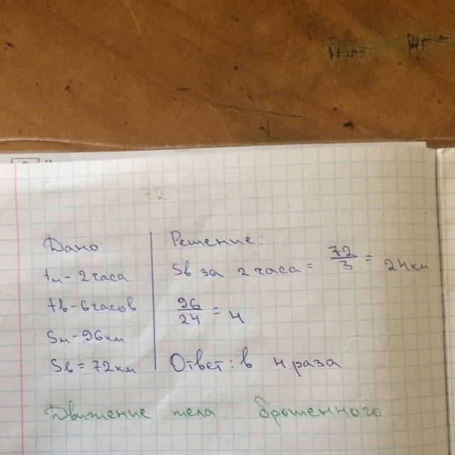 2) 72:6=12 (км/ч)- скорость велосипеда