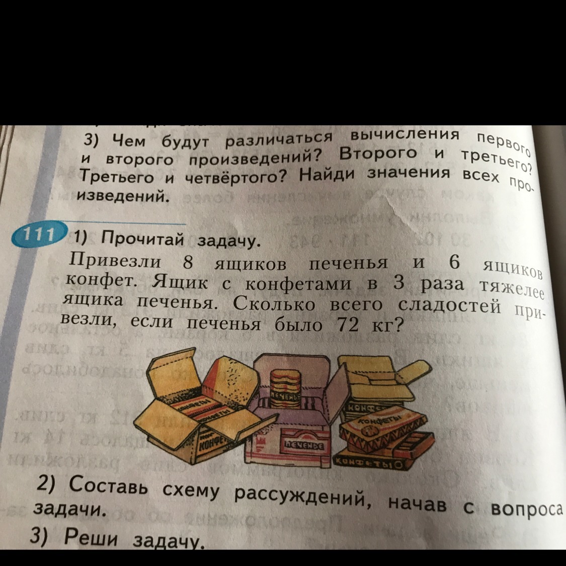 1)72÷8=9(кг)-весит 1 ящик печенья;