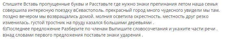 впишите пропущенные буквы и Расставьте где нужно знаки препинания летом наша семья совершила интересную поездку в Севастополь прекрасный город много чудесного увидели мы так поздно вечером мы возвращались домой молния осветила окрестность резко Изменилась ли на пруду казался большими деревьями в Последнее предложение Разберите по членам Выпишите словосочетание