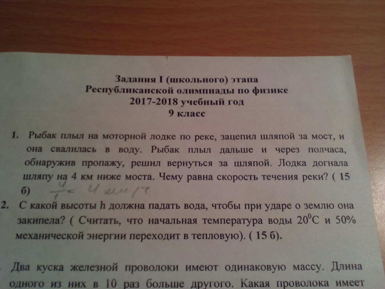 Рыбак нашол шляпу через два часа так как шляпа была не подвижна и он ехал вперёд 1 и назад час.А скорость течения 2 мы это получим если 4/2.