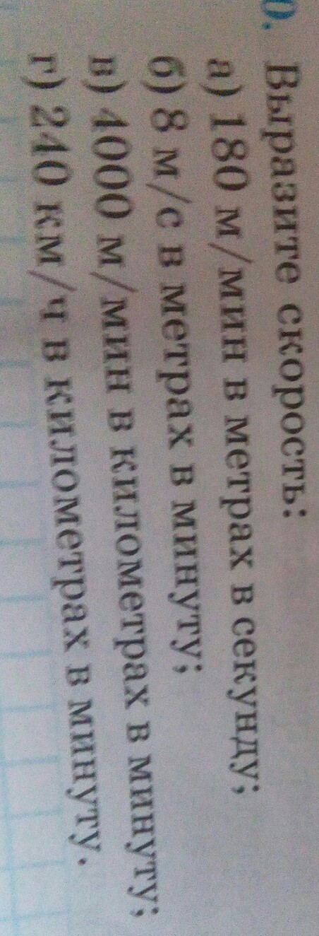 1) 3 м/сек. 2) 8 м/мин. 3) 4 км/ мин 4) 4км/мин.