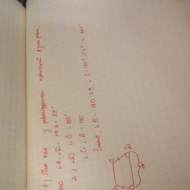 В равнобокой(равнобедренной) трапеции сумма углов при большем основании равна 118 градусов. Найдите углы трапеции.