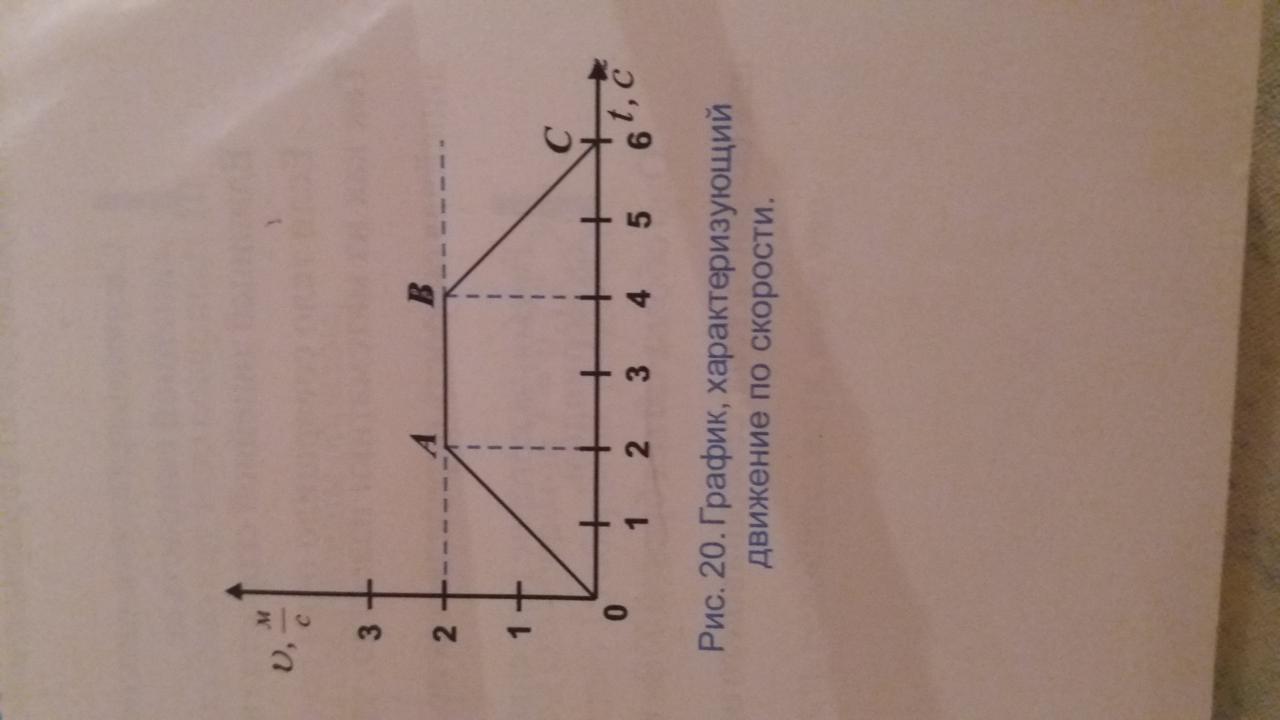 Определите по рис.20 скорость движения тела в первую секунду, а затем в пятую секунду. Определите ускорение движения на каждом отрезке.