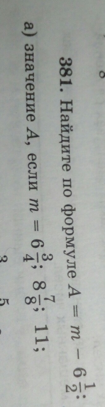 m=6 frac{3}{4}  \  A=6 frac{3}{4} - 6 frac{1}{2} =  frac{3}{4} -  frac{2}{4} =  frac{1}{4}  \  \ m= 8 frac{7}{8}  \ A= 8 frac{7}{8} - 6 frac{1}{2} = 2 frac{7}{8} -  frac{4}{8} = 2 frac{3}{8}  \  \ m=11  \ A= 11 - 6 frac{1}{2} = 4 frac{2}{2} - frac{1}{2} = 4 frac{1}{2}