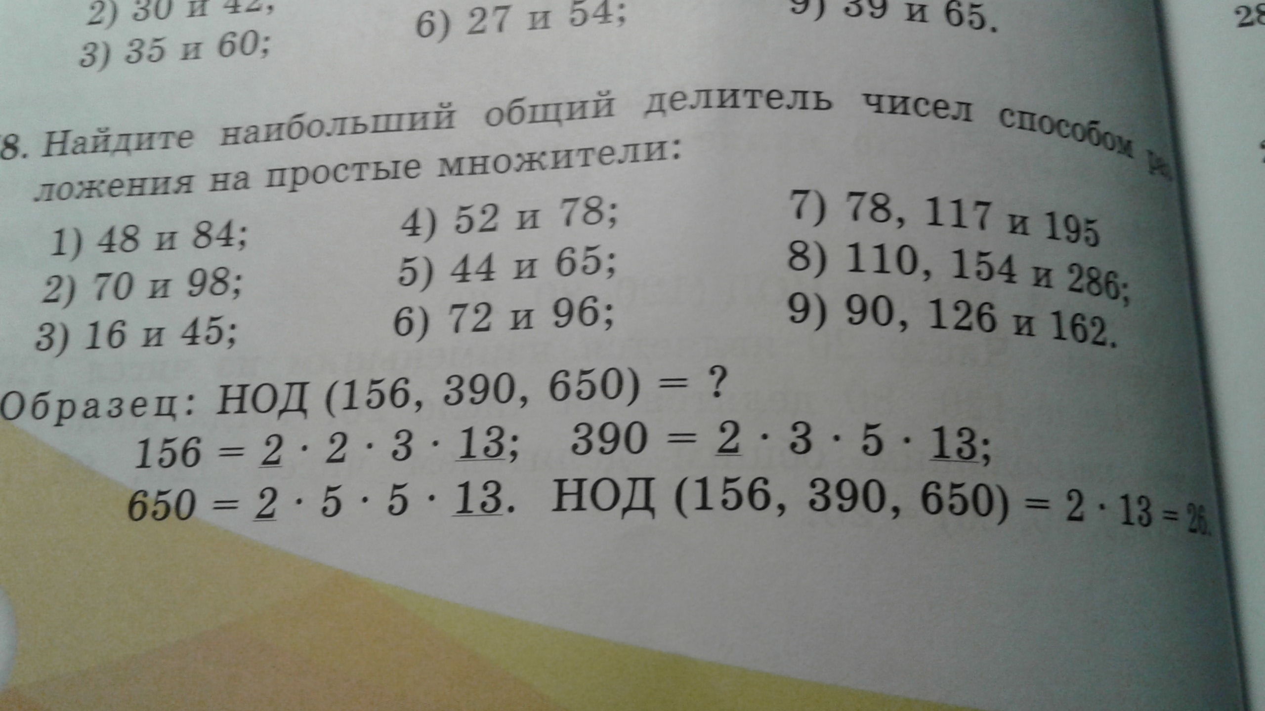 НОД (72, 96) = 2 × 2 × 2 × 3 = 24