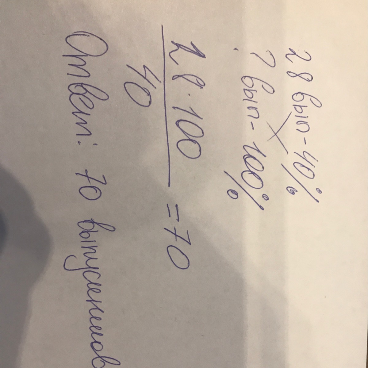 2.)28 выпускников школы собираются учится в технических вузах Они составляют 40 % от числа выпускников сколько в школе выпускников?