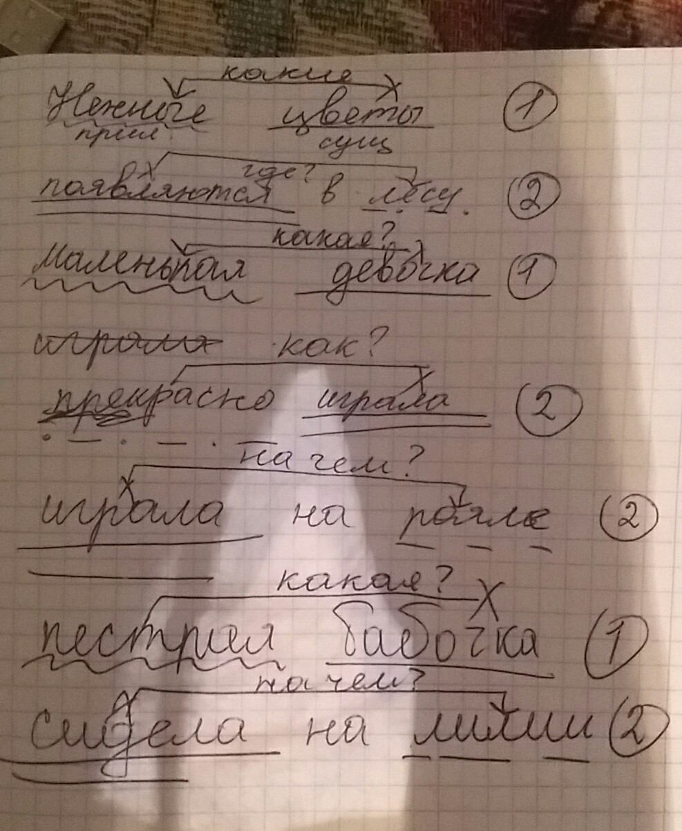 Бабочка (какая?) пёстрая;сидела (на чём?) на белой лилии