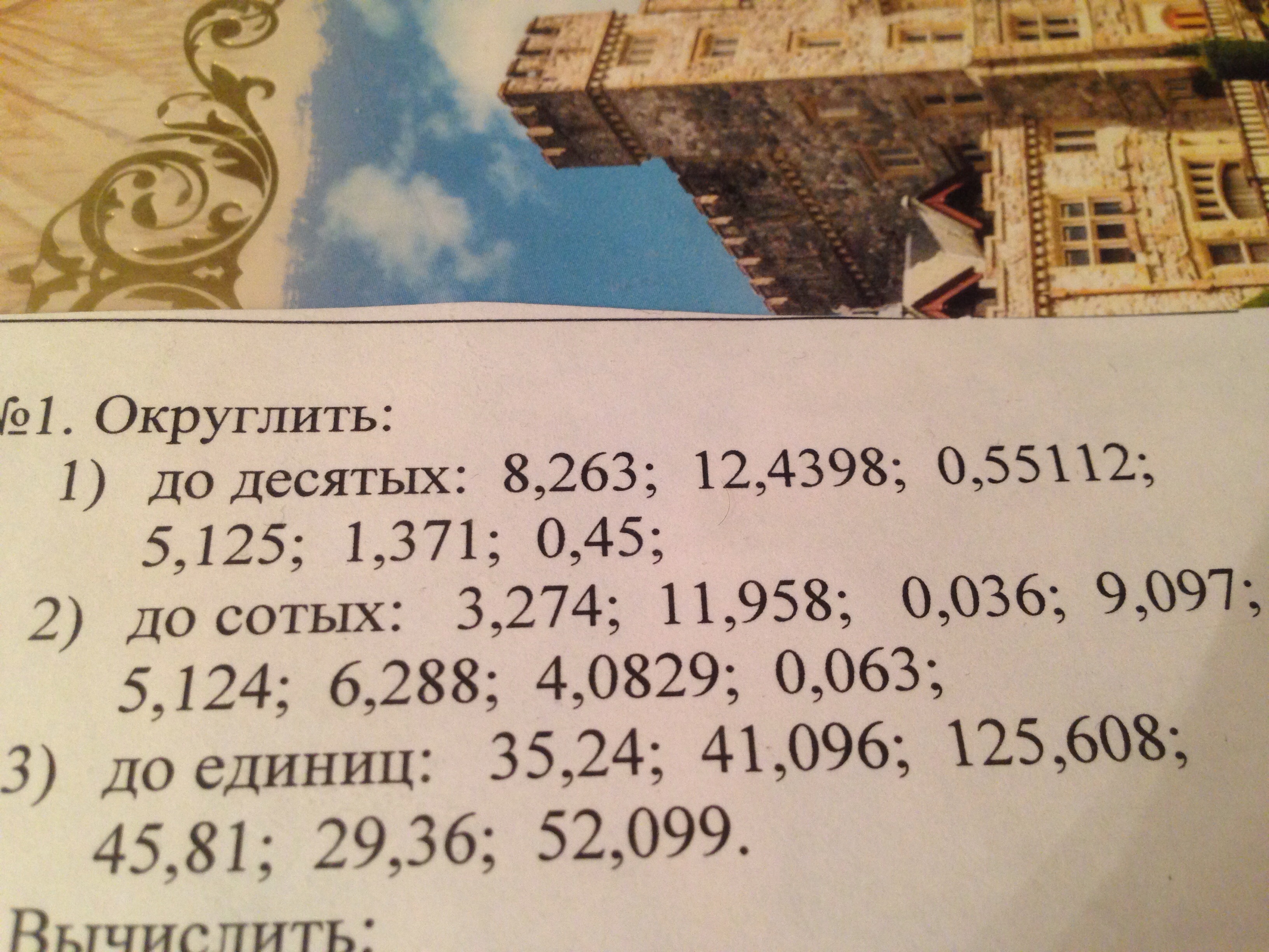 3) до единиц: 35,24; 41,096; 125,608; 45,81; 29,36; 52,099