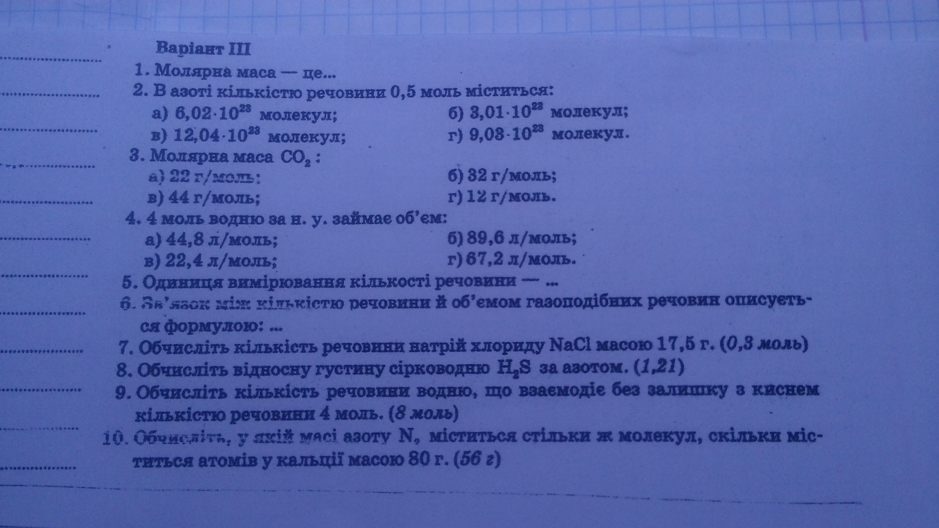 №1) Фізична величина, рівна відношенню маси до количествву речовини.