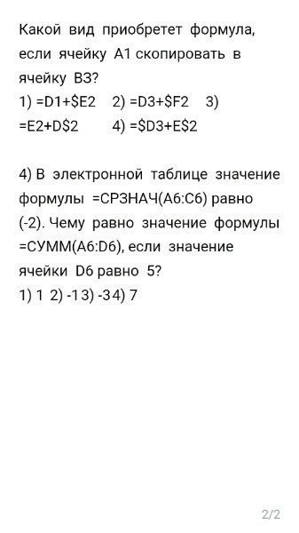 Функция СРЗНАЧ(A6:C6) считает среднее арифметическое диапазона A6:C6, т. е. сумму значений трёх ячеек A6, B6, C6, делённую на 3. Умножим среднее значение на количество ячеек данного диапазона и найдём: A6 + B6 + C6 = -2 × 3 = -6