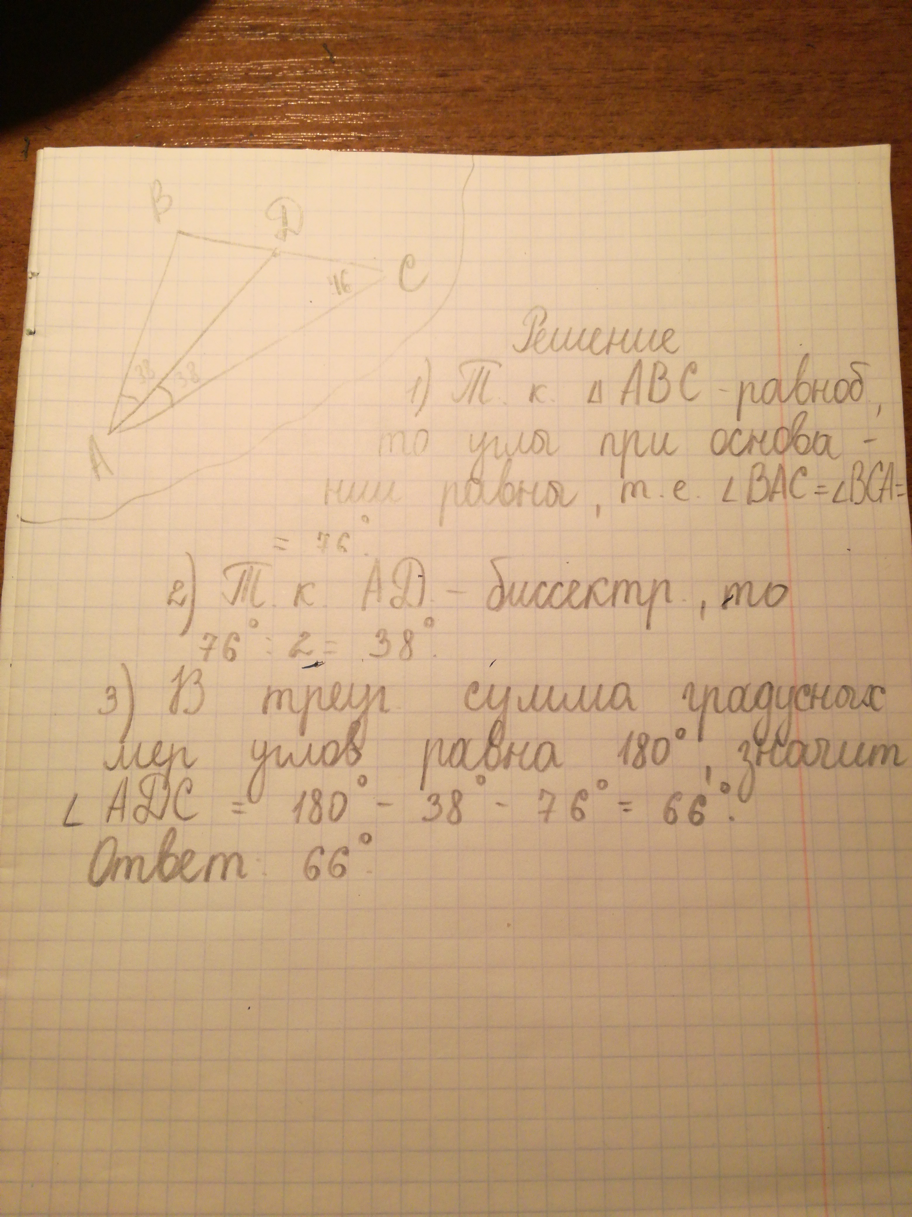 В равнобедренном треугольнике ABC, с основанием AC проведена биссектриса AD.