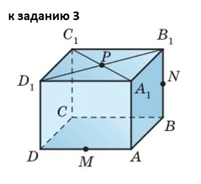 3.Постройте сечение прямоугольного параллелепипеда ABCDA1B1C1D1 плоскостью, которая проходит через середины M и N его ребер AD и BB1 и точку P пересечения диагоналей грани A1B1C1D1.