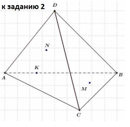2.Изобразите тетраэдр DABC и отметьте точку K на ребре AB и точки M и N граней ABC и ACD. Постройте сечение тетраэдра плоскостью MNK.
