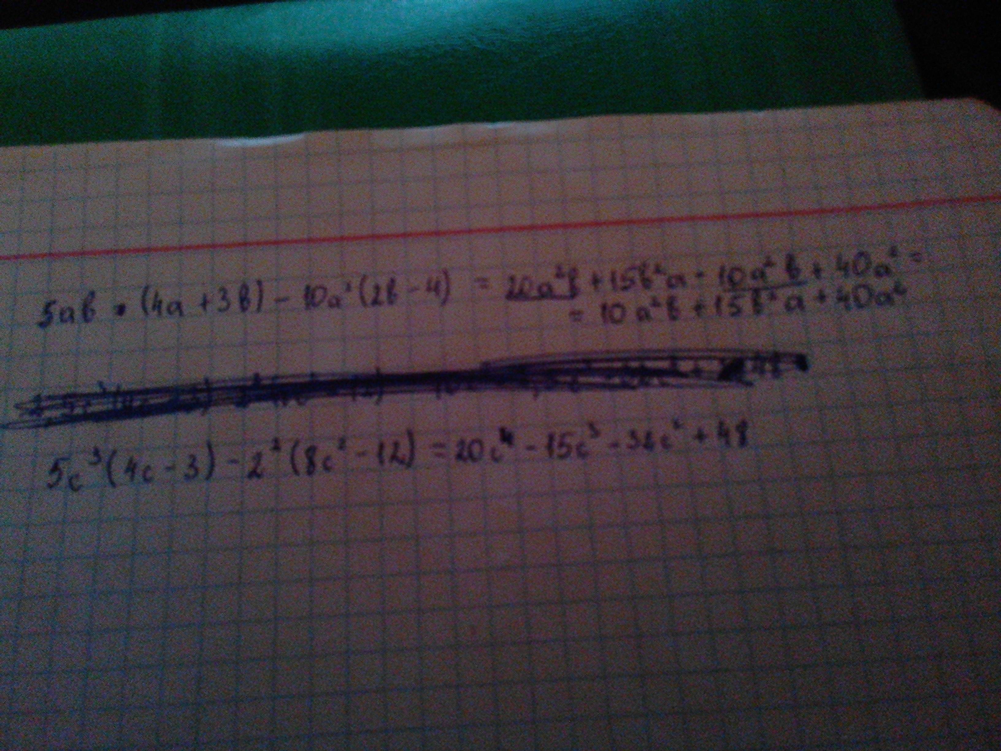 1. 5ab*(4a+3b)-10a^2*(2b-4)