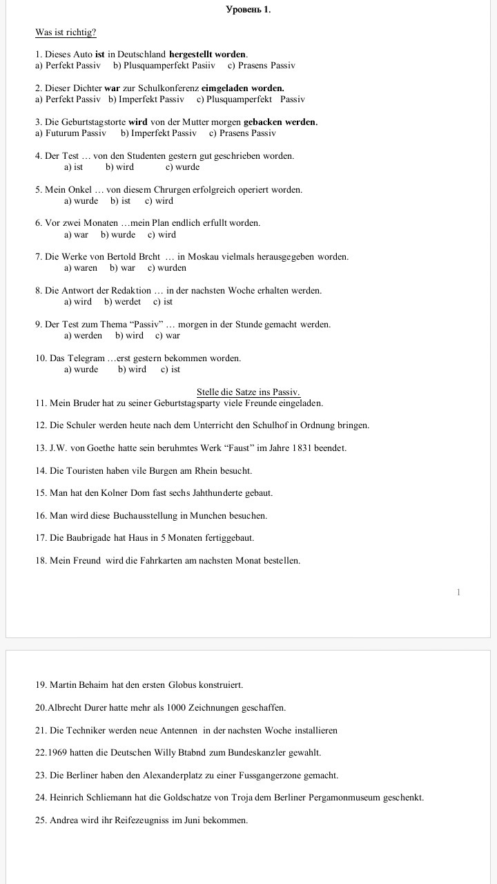 18. Die Fahrkarten werden von meinem Freund am nächsten Monat bestellt werden.