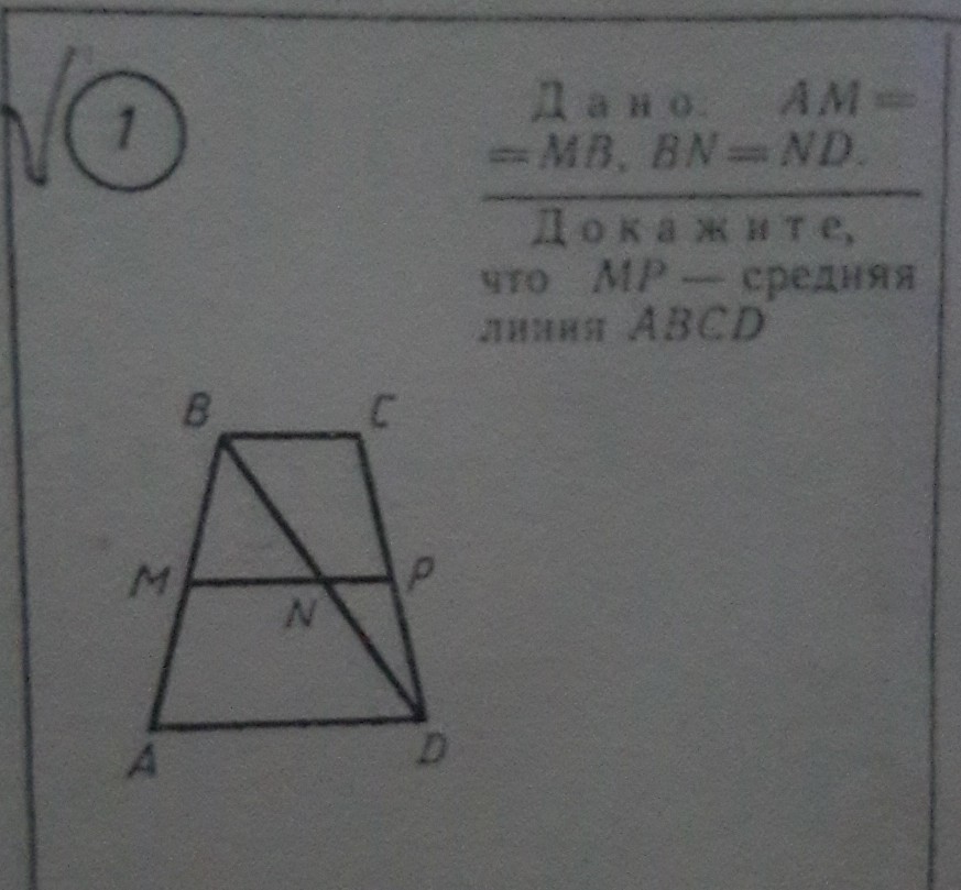 MN-средняя линия ΔABD.МР║АD.По теореме Фаллеса ^ LP=PD.⇒МР-ср.линия трапеции АВСД.