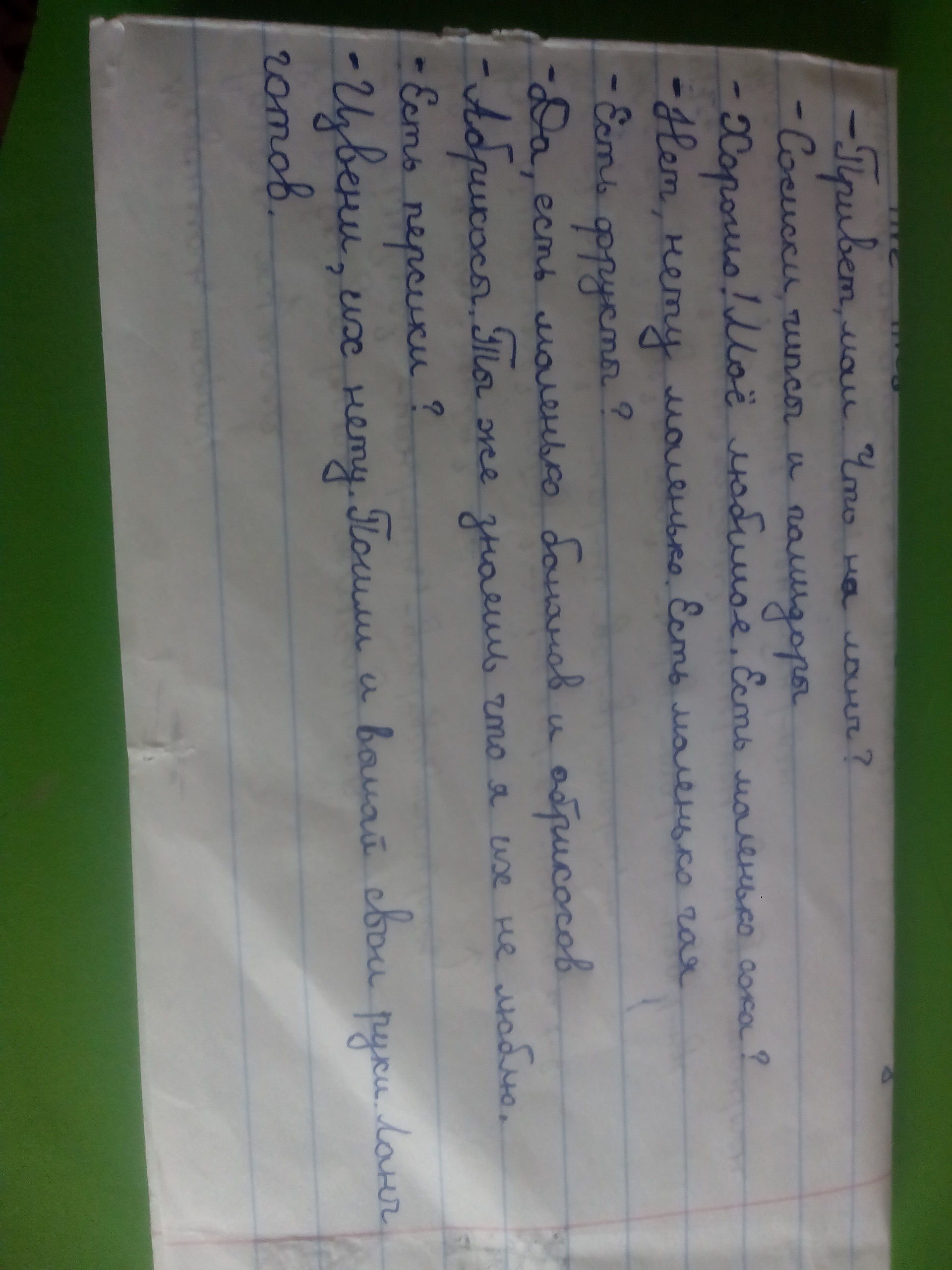 Перевела на русский чтоб понял(а) о чем в диалоге говорится. В задание надо было сказать что есть на ланч