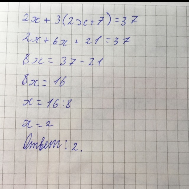 2х+3(2х+7)=37