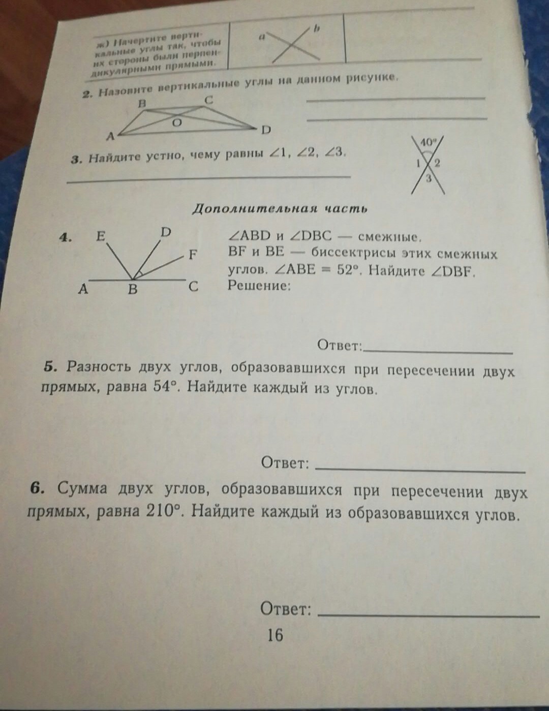 5) пусть один угол х, тогда другой х+54 их сумма равна 180. Отсюда уравнение х+х+54=180