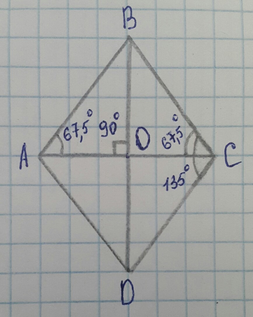 Если угол BCD=135°, то его противоположный угол тоже будет 135° т.е. угол BAD=135°, т.к. ромб равнобедренный.