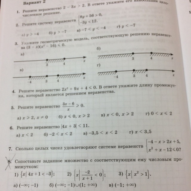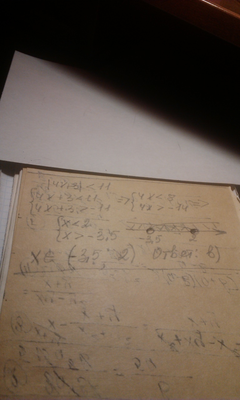 правильно решение! |4х+3|<11; 4х+3<11; 4Х<11-3; 4Х<8; Х<8:4;Х<2; 1) (2;+бесконечность)Ответ А) Х<2