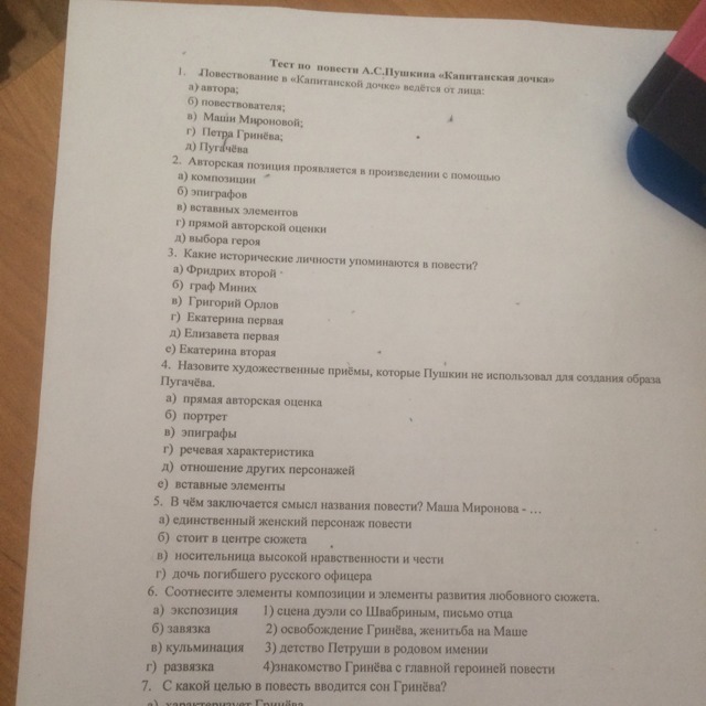 г) развязка 2) освобождение Гринева, женитьба на Маше