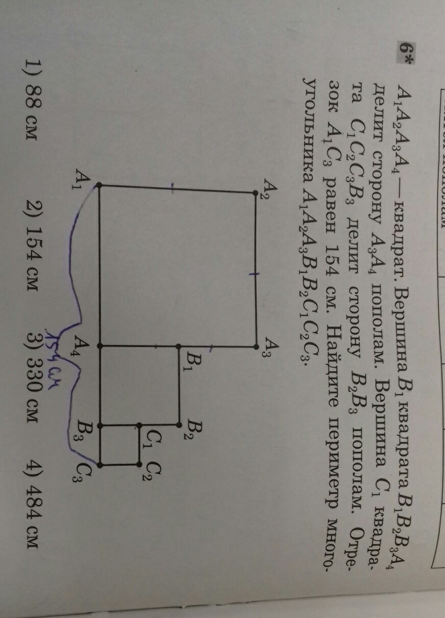 Пусть В₃С₃-х, тогда А₄В₃-2х, а А₁А₄-4х Их сумма дает отрезок А₁С₃=154. Отсюда уравнение